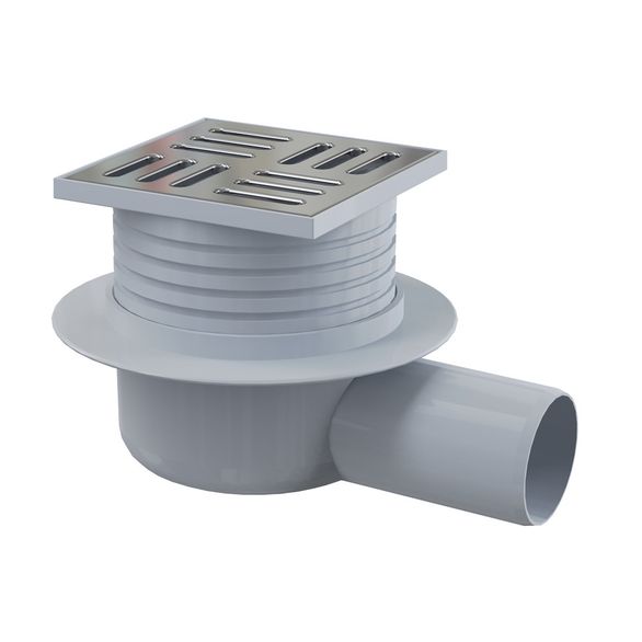 Alcadrain Podlahová vpusť 150×150/110 mm boční, mřížka šedá APV10