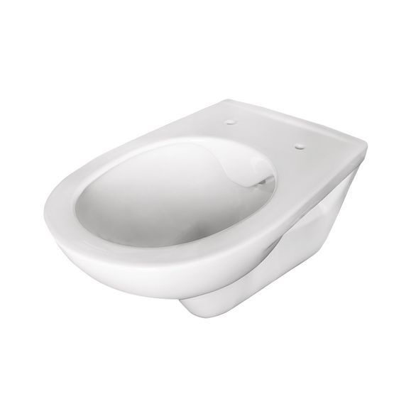 Závěsné WC bez splachovacího kruhu.